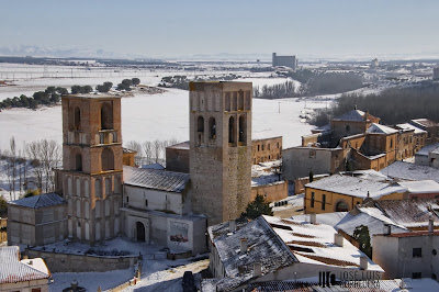 Vista de general de la nevada desde Santa María, en primer termino la Iglesia de San Martín, a la derecha San Nicolás, la ribera del Adaja y al fondo la sierra de Segovia